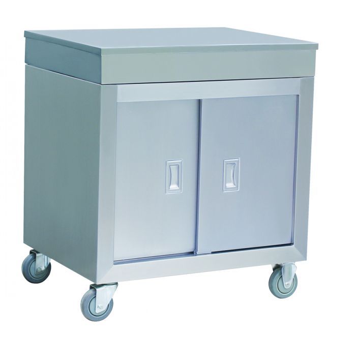 材质说明:为满足卫生清洁要求板材采用优质拉丝不锈钢板,料盆用1.2mm厚不锈钢板;柜身及层板用1.2mm厚不锈钢板并用1.5mm钢板做加强筋,使其不变形;滑动拉门用1.2mm不锈钢作外壁,0.8mm不锈钢作内壁,门安装平式接引手柄,并采用双层式构造,中间填料,门厚12-15mm,趟门采用吊装式滑轨,使其不用工具就可以卸下,便于清理;脚配ф110mm的低噪音优质万向刹车轮4个。