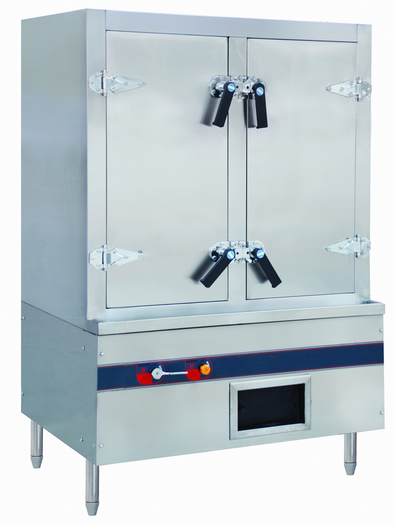 蒸柜炉内由上身柜体及下身黑铁炉胆组成,炉身采用进口不锈钢板,下身黑铁水胆外封不锈钢,自动排出过压蒸汽。下支架用40×40×4mm角铁并加涂防锈漆,水胆为5mm厚黑铁板,外封不锈钢板,使炉身外观优美并坚固。